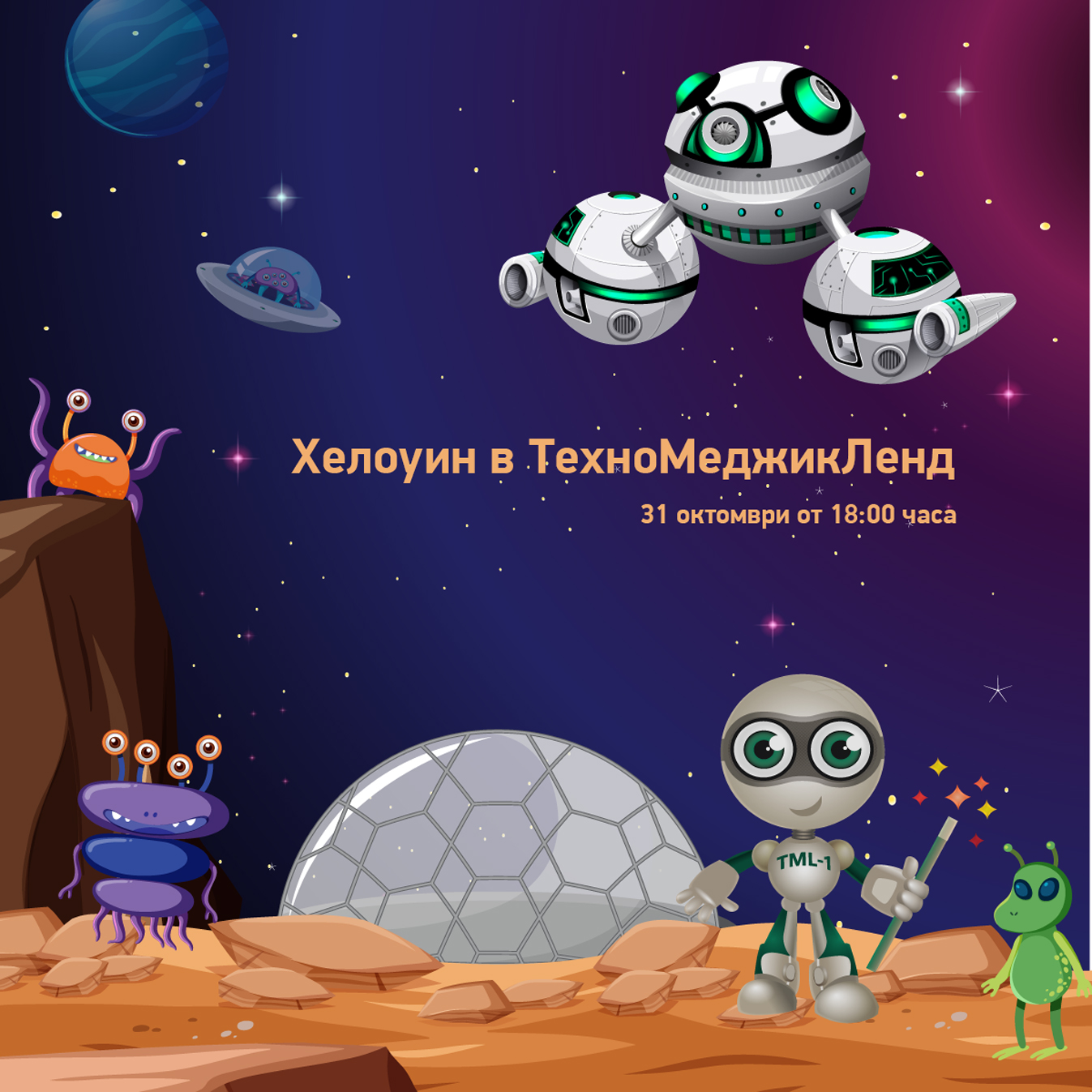 We will try to imagine the life of aliens and jump in their clothes. We will make a real show of your favorite aliens on Halloween night! For this purpose we will need the help of our guests. That's why every TechnoMagicLand guest has to come disguised as his beloved alien on the night of October 31st. The three best overpayments will be awarded with special prizes. The first place will be awarded by an authoritative jury, and the second and third will be selected by the public by secret ballot. The main evaluation criteria are the costume and the imitation of the character's behavior. To support your presentation, we have prepared some face paints that will be available to you in curved mirrors